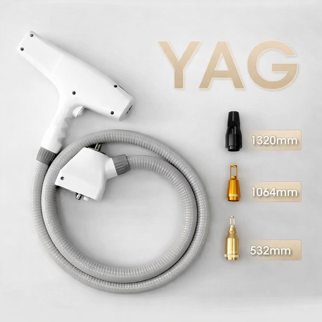 Includes 532nm, 1064nm, and 1320nm heads for colored tattoos, dark pigments, and carbon peel rejuvenation. -